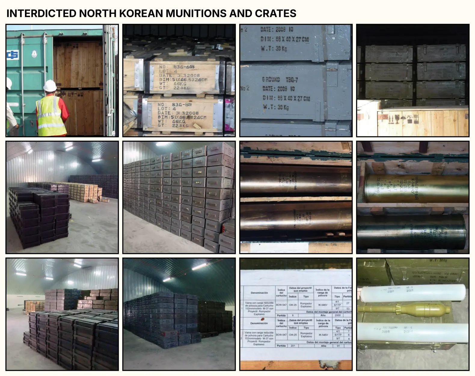 To estimate the volume of munitions that North Korea has transferred to Russia, OSC collected over 180 satellite images, identifying at least 64 trips undertaken by the Angara, Maria, Lady R and Maia-1. Notably, all of these vessels conducted these journeys without transmitting on their AIS transponders, meaning that each vessel had to be identified in each image. In order to estimate the numbers of possible North Korean munitions shipped in these containers, the OSC used images from previously interdicted North Korean munitions shipments and other open sources of DPRK-origin munitions such as 122 mm and 152 mm artillery shells.