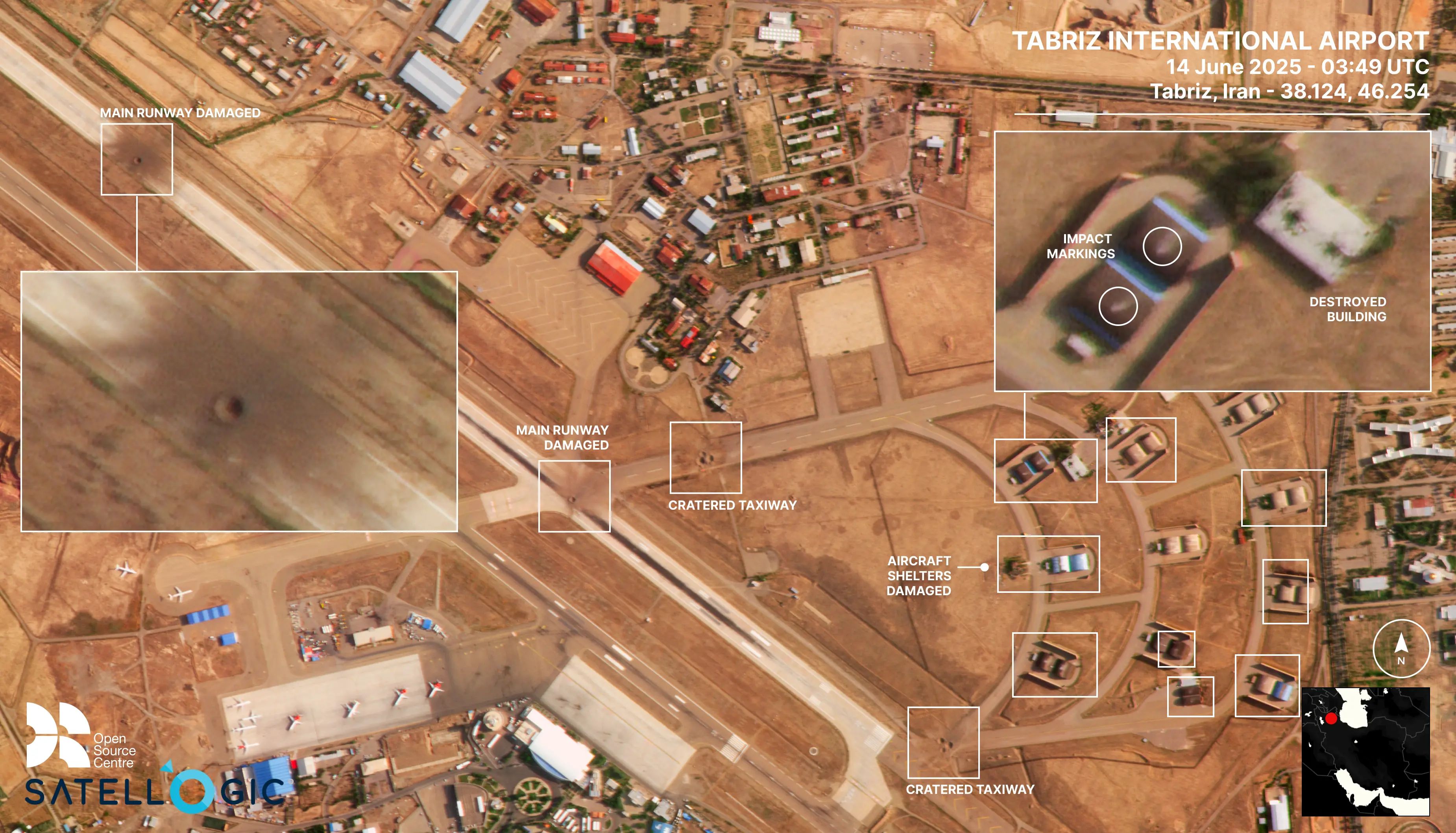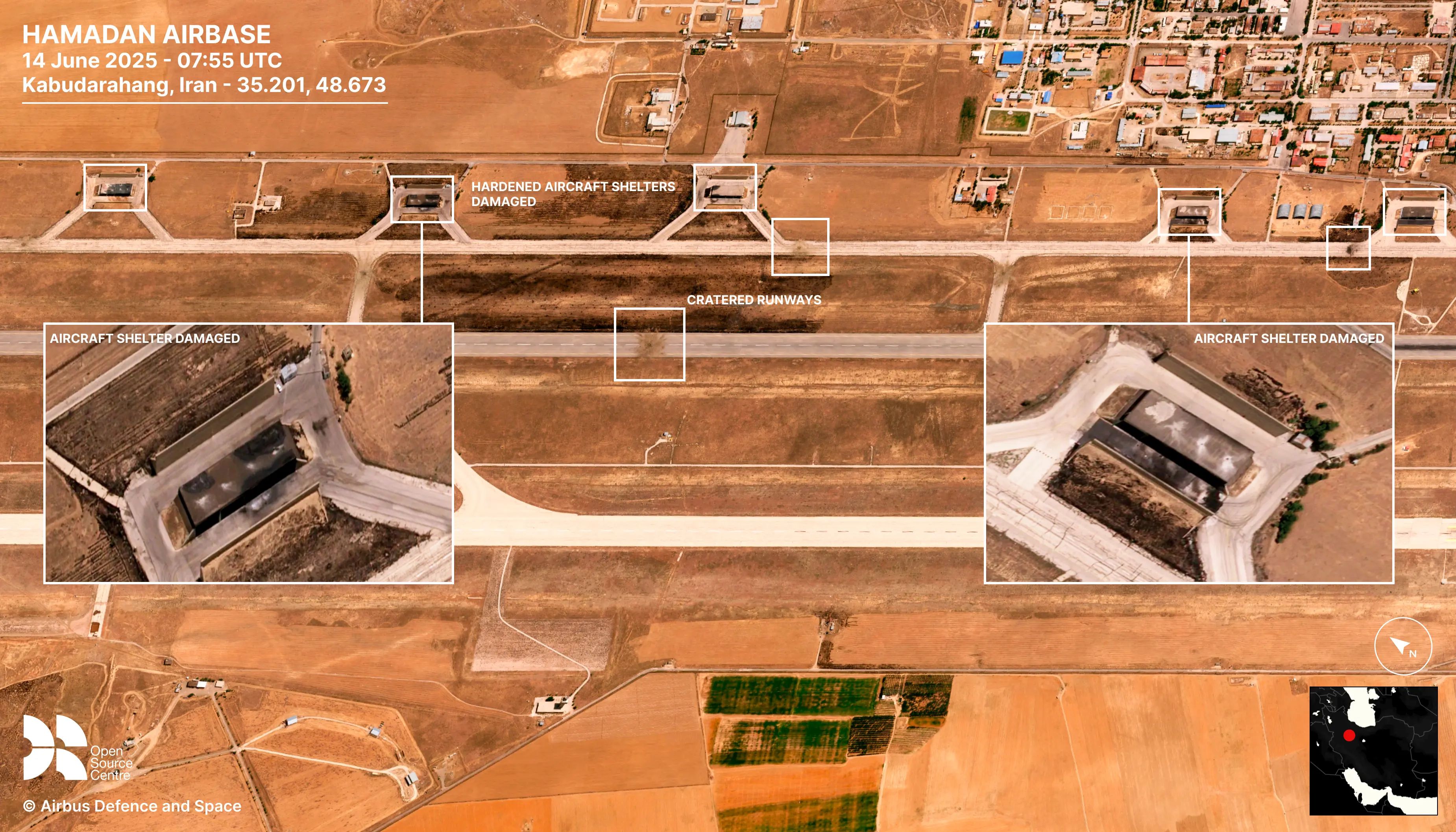 Images taken on 14 June at Hamadan and Tabriz airbases indicate that Israel likely grounded Iranian aircraft by cratering the runways and hitting hardened aircraft shelters.