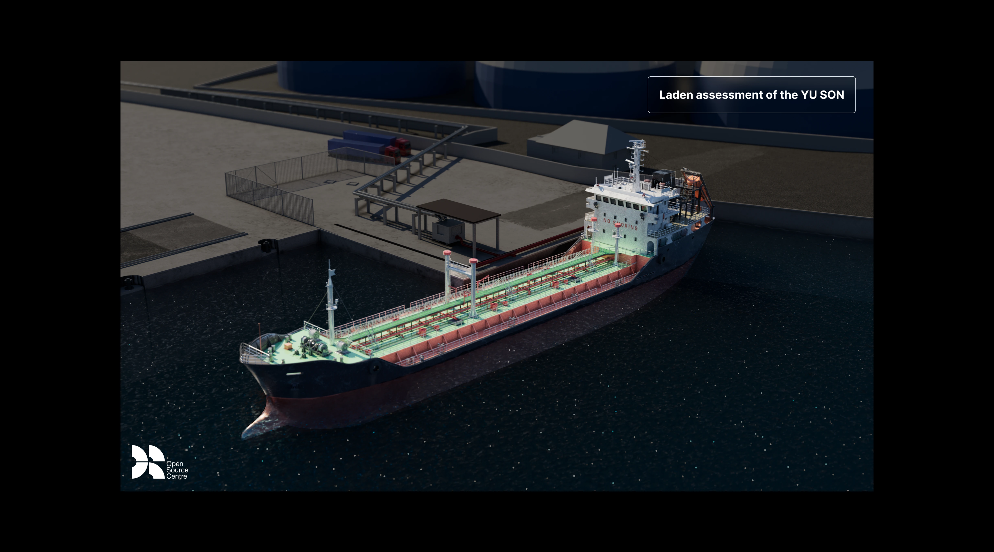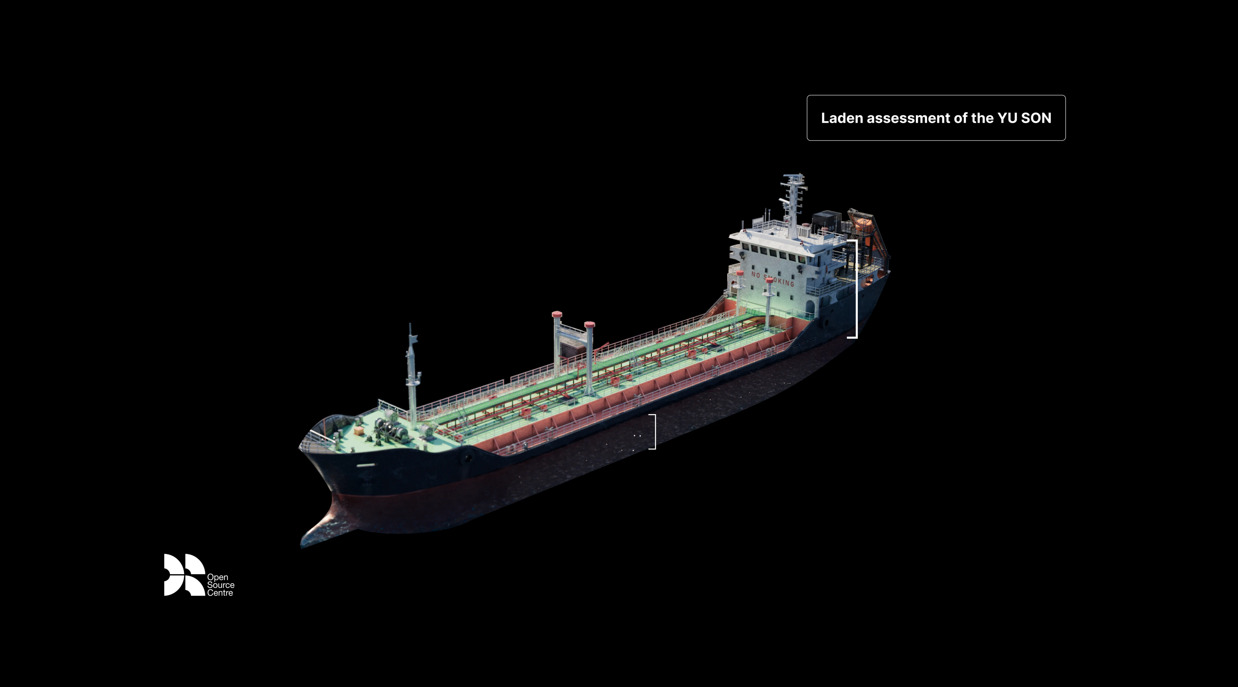 To address these questions, OSC created a highly detailed 3D model of one of the most frequently observed DPRK tankers, the Yu Son (IMO: 8691702). Using a number of advanced analytic techniques, such as multiple camera projection, rotoscopy and photogrammetry, this digital twin of the Yu Son enabled OSC to make highly accurate laden assessments of the vessel when it was in port.